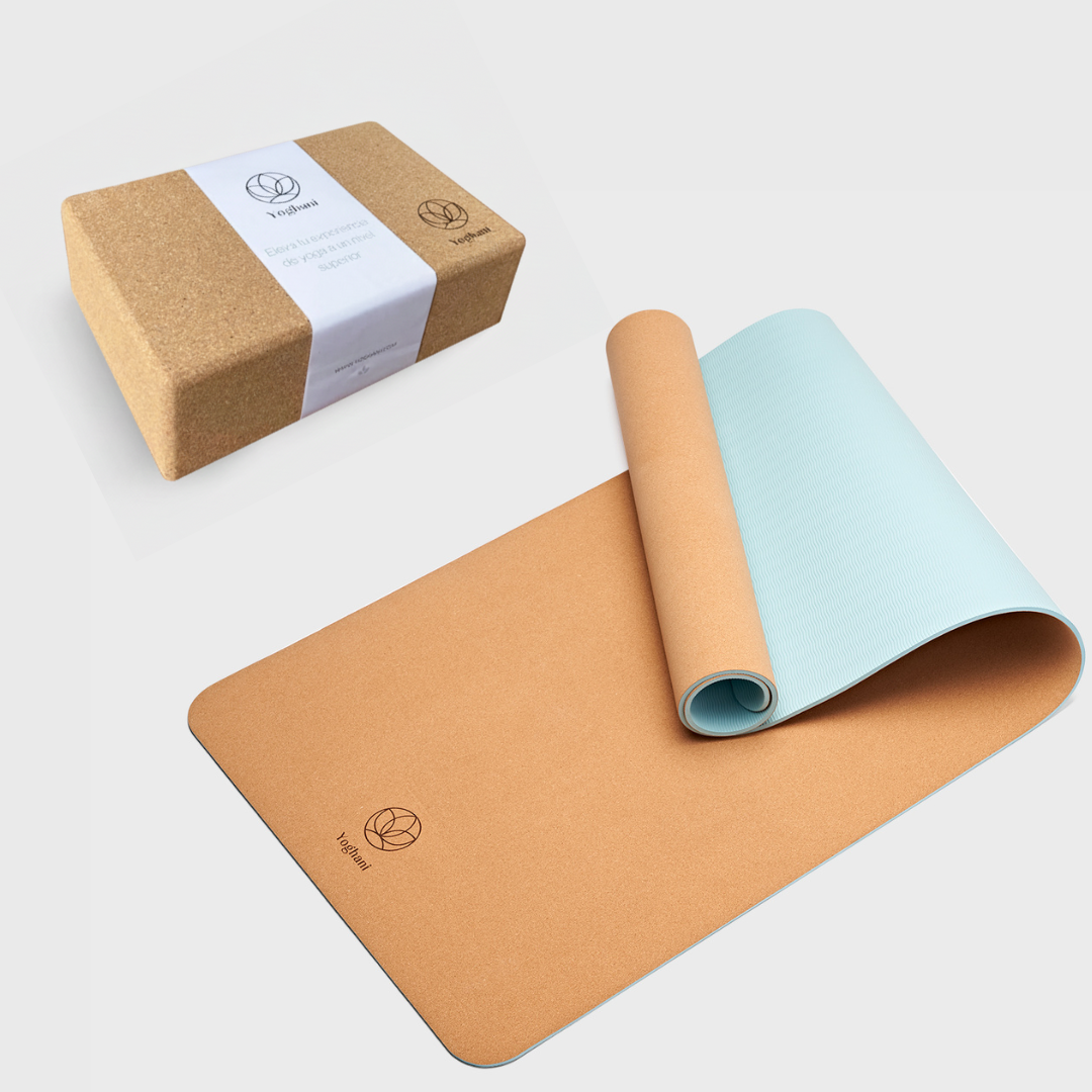 Mat de Yoga Colección Natural Aranyani + Bloque de Corcho Natural